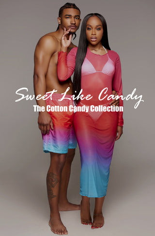 Cotton Candy Couple Swimwear Mesh Dress & Trunk Set (Pre-Order)