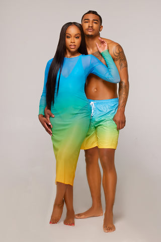 Ocean View Couple Swimwear Mesh Dress & Trunk Set