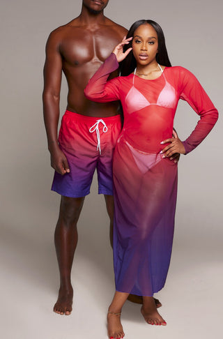 Purple Horizon Couple Swimwear Mesh Dress & Trunk Set (Pre-Order)